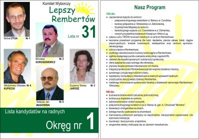 A oto nasi kandydaci do Rady Dzielnicy Rembertów w wyborach samorządowych w 2006 roku:
